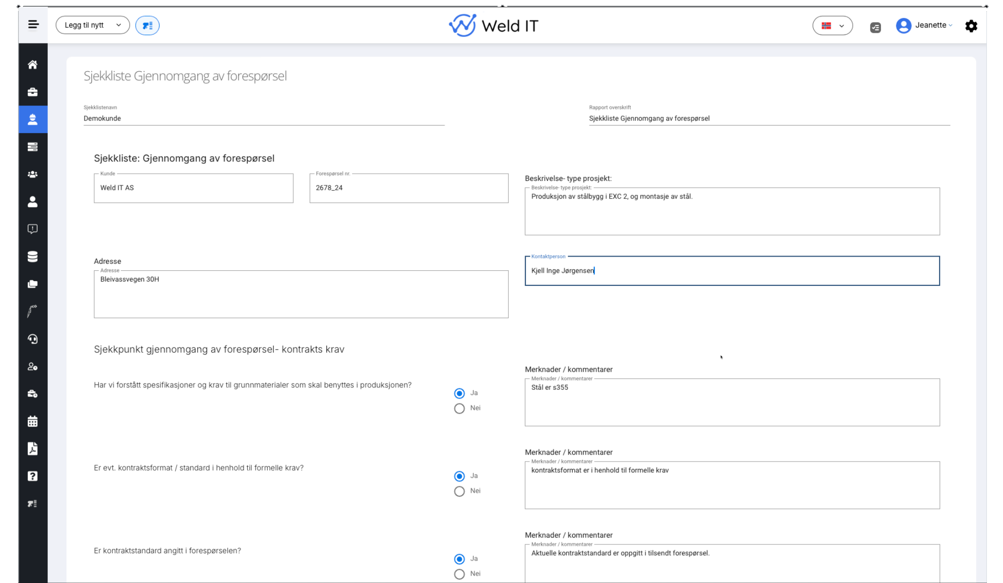 Konklusjon: Med riktig bruk av digitale verktøy og en god struktur på forespørselsgjennomgangen, kan du sikre at prosjektet blir planlagt, priset og gjennomført korrekt. Dette gir bedre kontroll, færre overraskelser, og en mer fornøyd kunde – alt gjennom enkel bruk av Weld IT-plattformen.